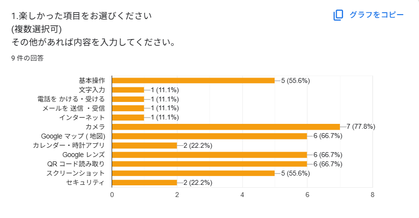 参加者のみなさんに、習ったばかりのQRコードを使ってのアンケートフォームに答えていただきました♪